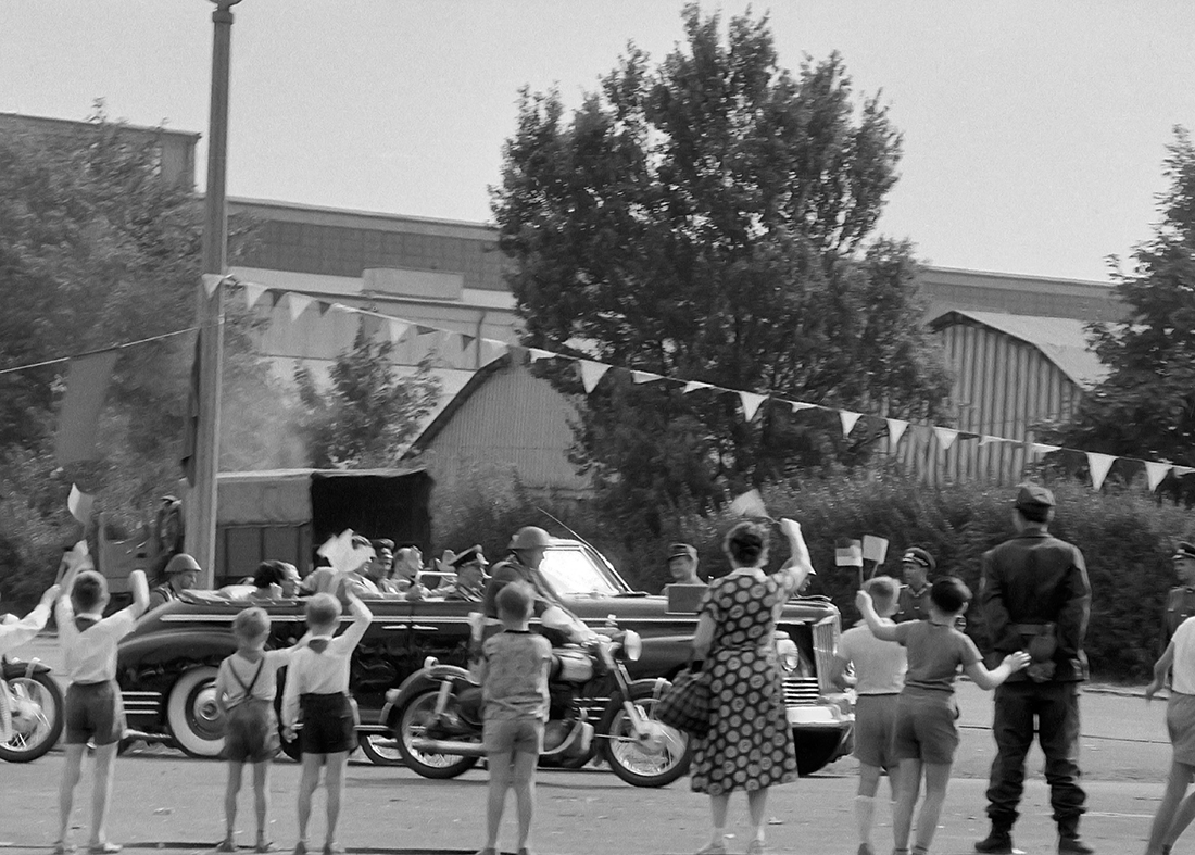 После того как Гагарин под всеми этими взглядами прошёл к Хрущёву и отрапортовал о выполнении задачи, ему предстояла поездка по Москве в открытом автомобиле, чтобы все советские граждане могли видеть «первого человека в космосе».