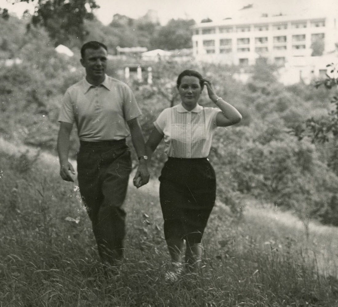 Юра и Валя познакомились и расписались ещё в Оренбурге, где Гагарин учился в Чкаловском военном авиационном училище лётчиков, а его будущая жена — в медучилище. В дальнейшем Валентина Гагарина работала в лаборатории Медицинского управления Центра управления полётами.